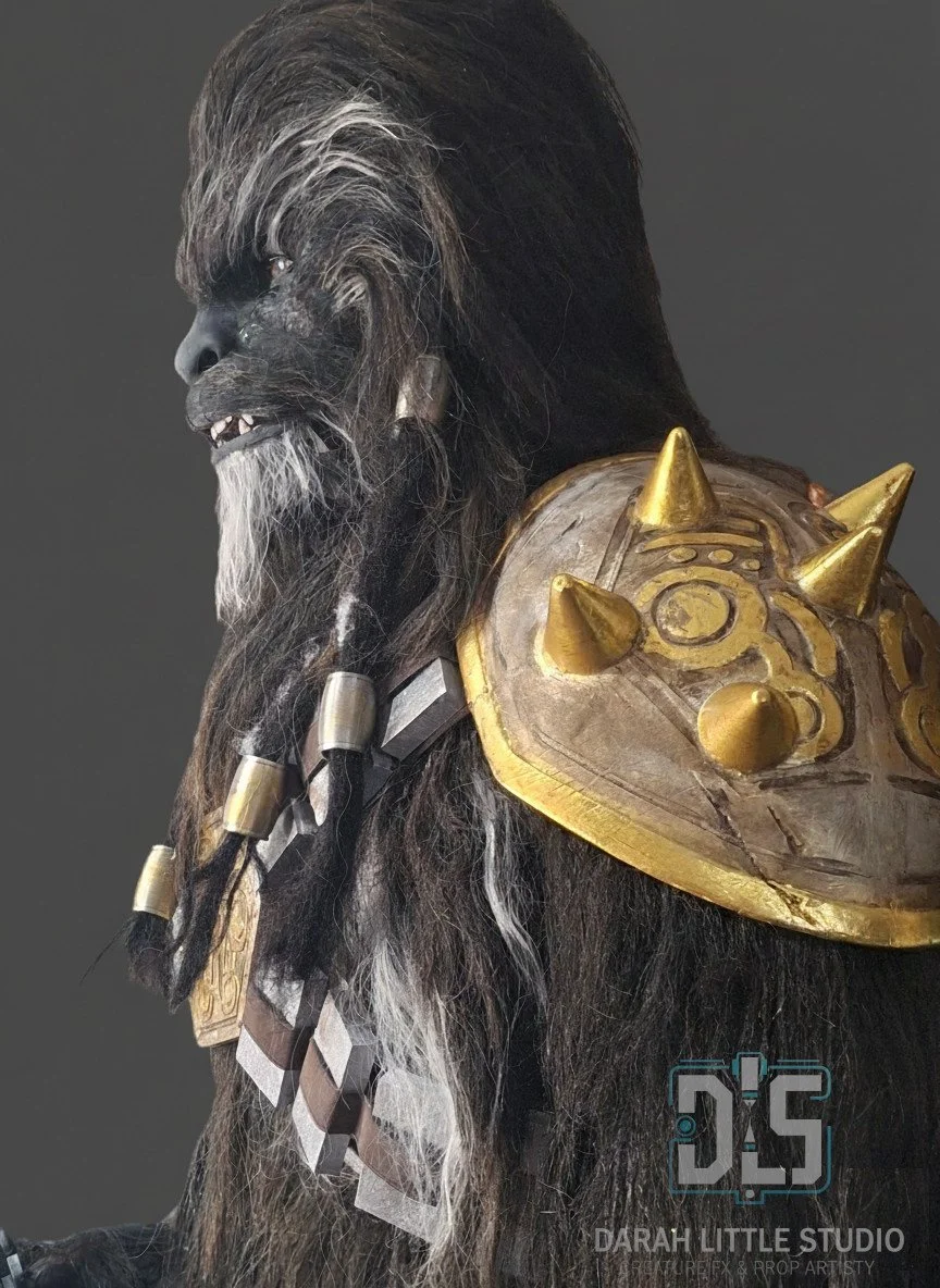 Anatomical Tailoring: Built a custom body over the internal pole-frame, allowing for a tailored, form-fitting fur suit that reflects proper Wookiee proportions.